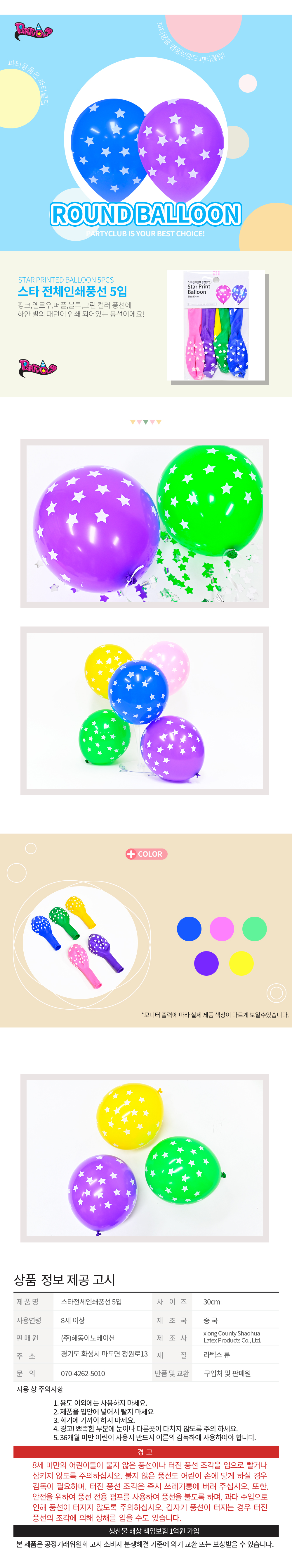 파티클럽 30CM 스타풍선 색상혼합 5입 (BB05) / 10개입 / 146988 |