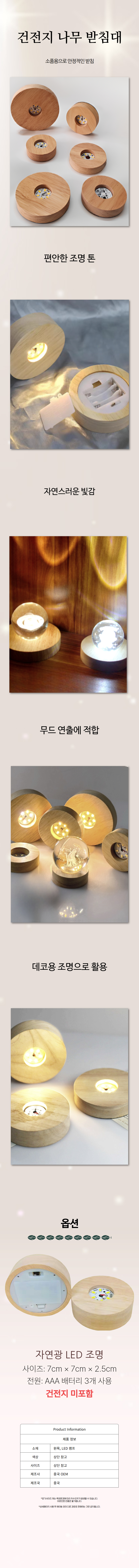 다용 나무 건전지 받침대 수정구 무선 무드등 거치대
