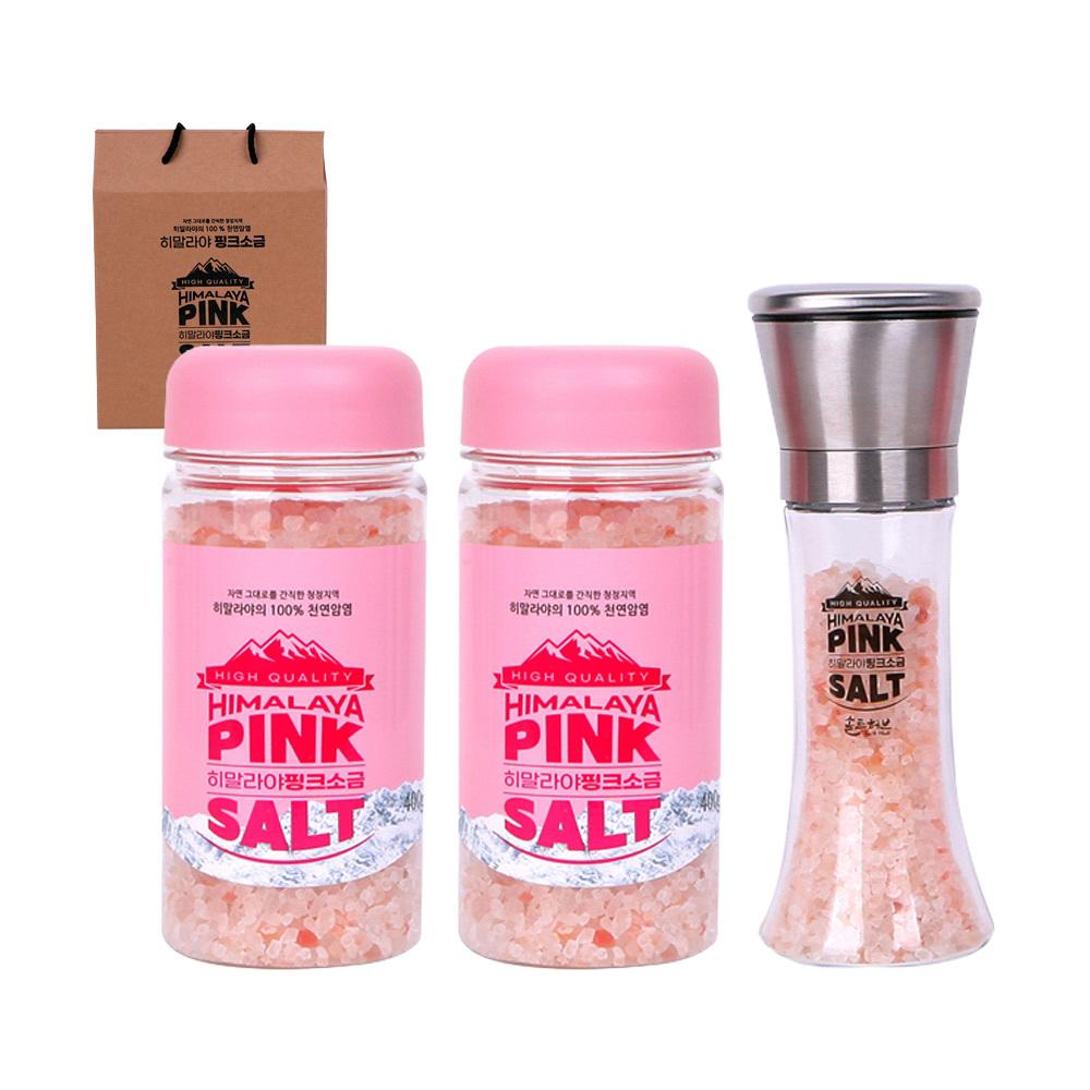 DM 선물용 히말라야 청정자연 핑크 솔트 굵은 핑크 400g 보틀x2개입+그라인더(공병)