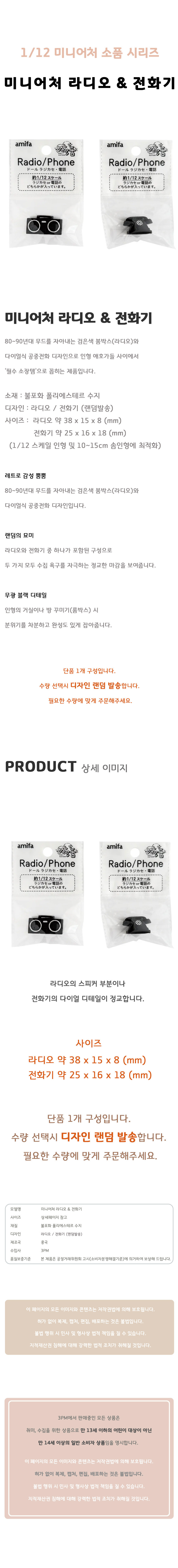 라디오 전화기 하우스 미니어처 일본 미니어쳐 블랙 2종
