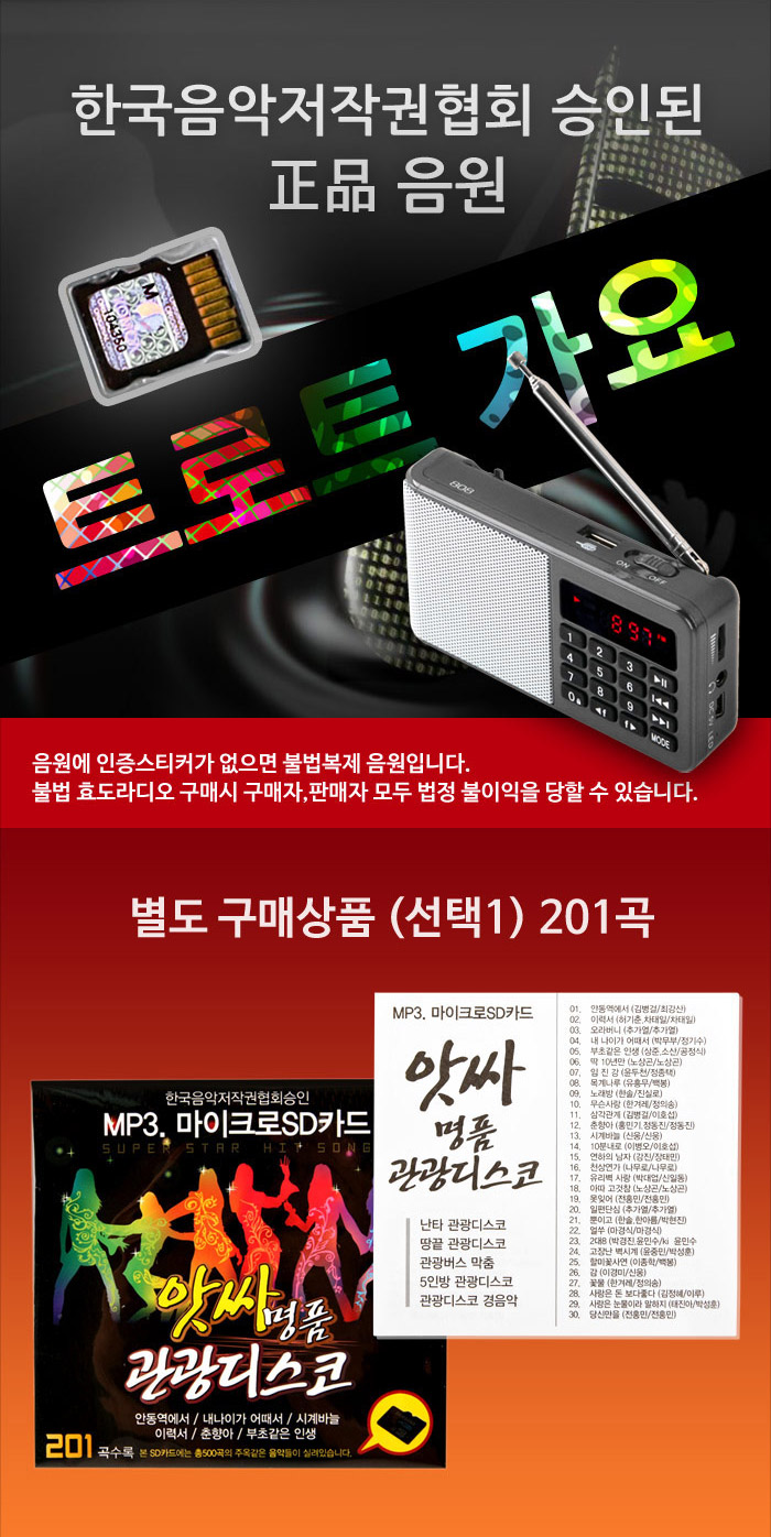Coms 음원 관광디스코 201곡 효도라디오용음원 메