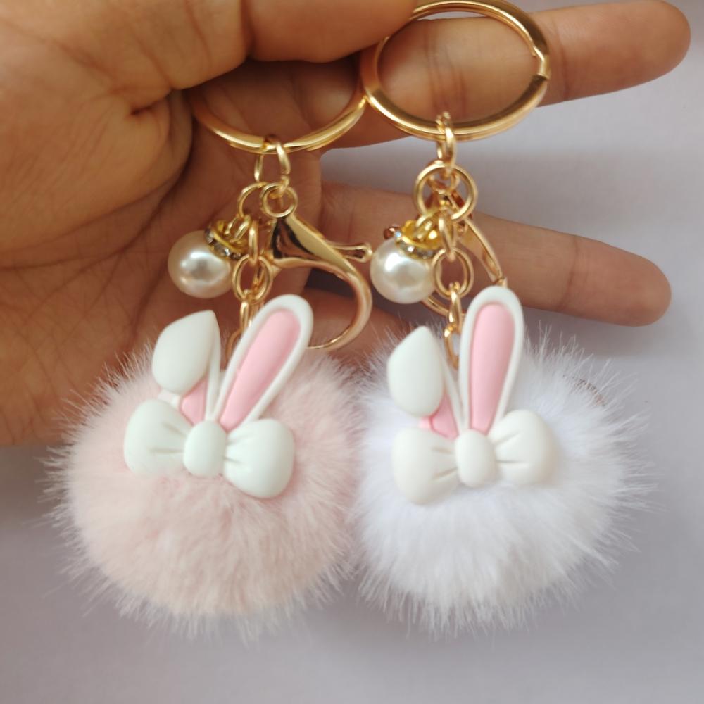 러블리 토끼 털 키링 패션 장식품 가방 키홀더 차키